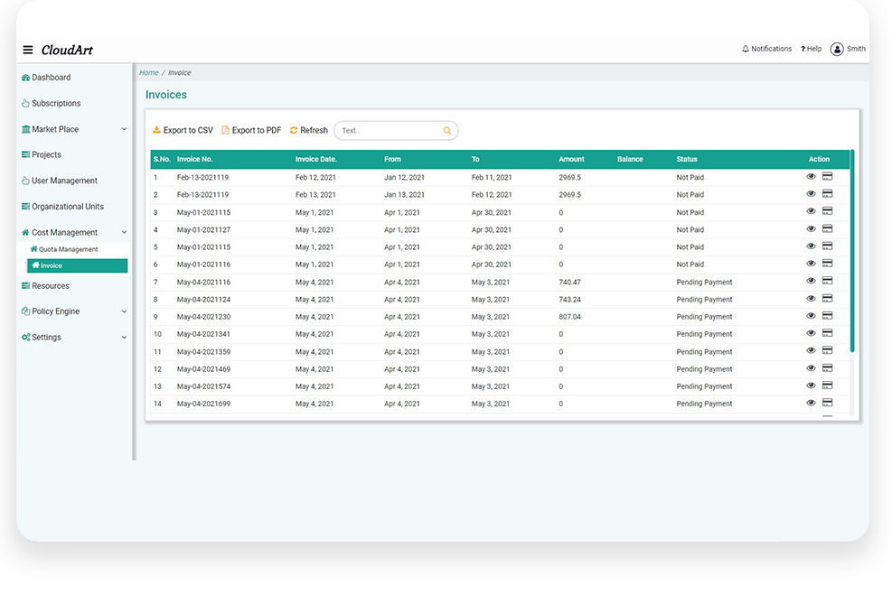 A must-have tool for managers and business owners. It collects the cost of all the cloud resources and the company’s important metrics in one easy-to-view report. They help business owners and managers to review the bigger picture of consumption trends on a regular basis while highlighting the key issues, risks, and spillages. You can track costs across Cost Centers, Projects, Cloud and Cloud Resources.